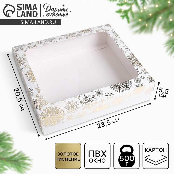 Коробка подарочная новогодняя складная «Снежинки», 23.5 х 20.5 х 5.5 см, Новый год