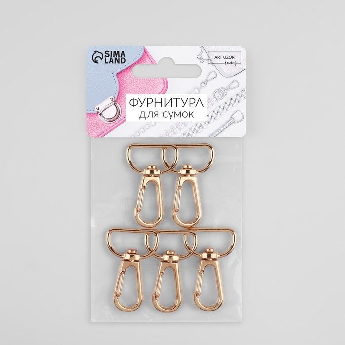 Карабин металлический, 36 × 24 мм / 20 × 2 мм, 5 шт, цвет золотой