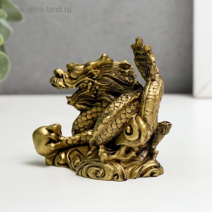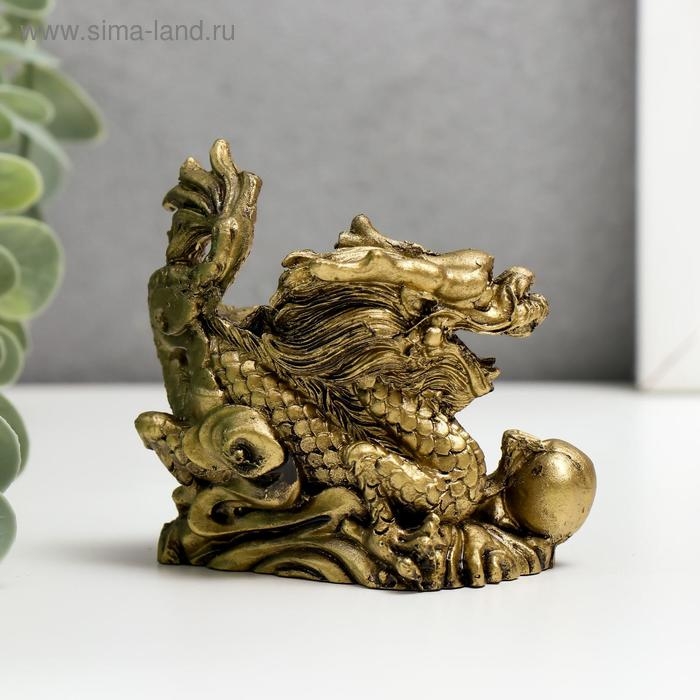 Нэцке полистоун бронза "Дракон с шаром" 7,8х7х4,5 см