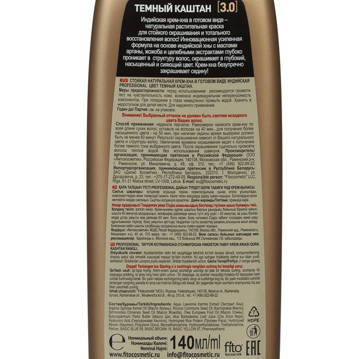 Крем-хна индийская в готовом виде Fitoкосметик Professional, тон тёмный каштан, 140 мл