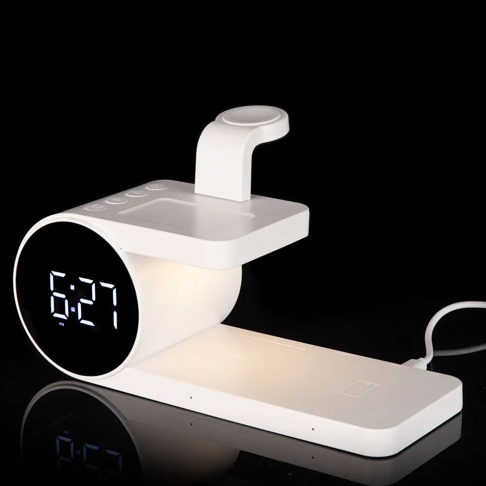 Часы настольные с беспроводным зарядным устройством Pitstop, белые
