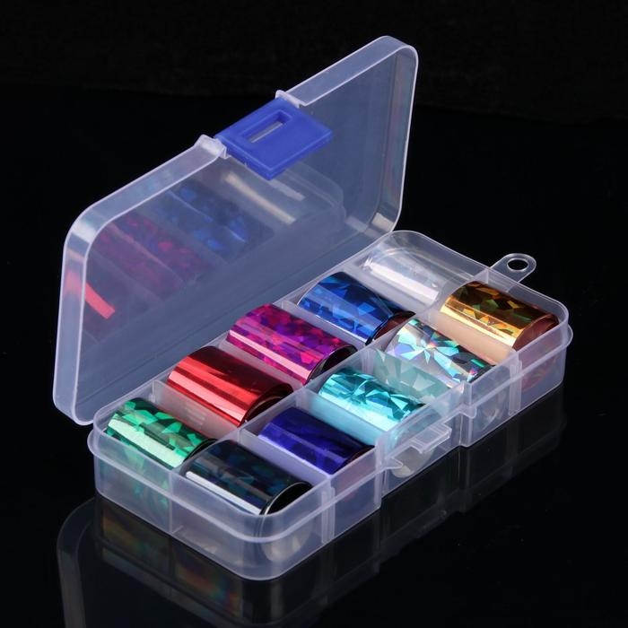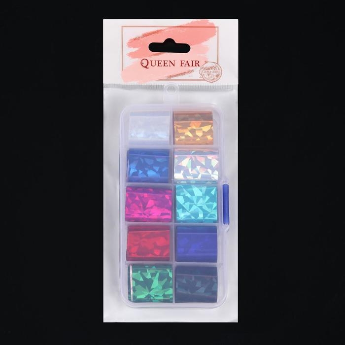 Набор фольги для ногтей «Битое стекло», 2,5 × 50 см, 10 шт, в пластиковом органайзере