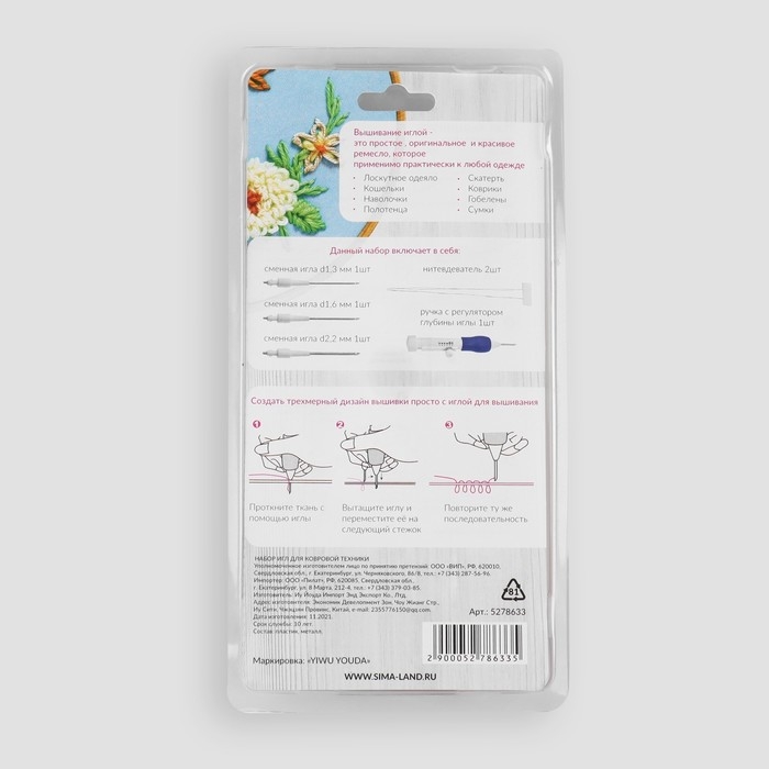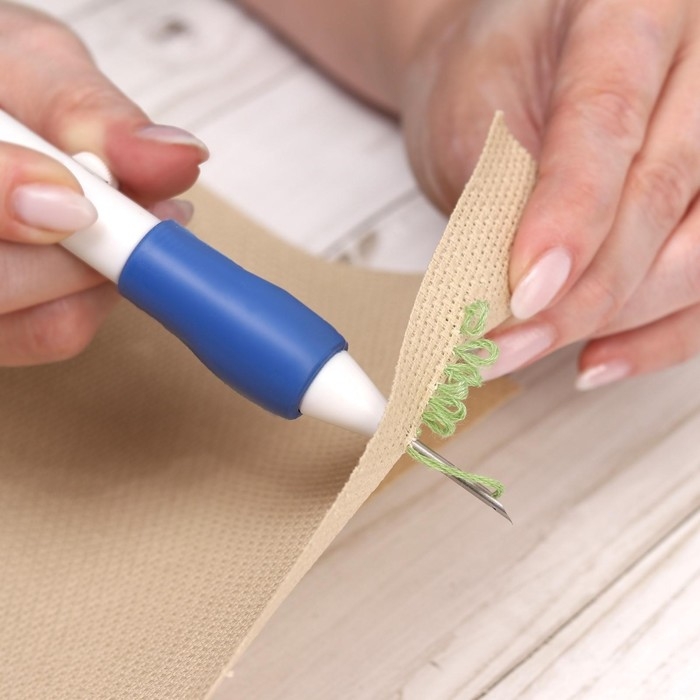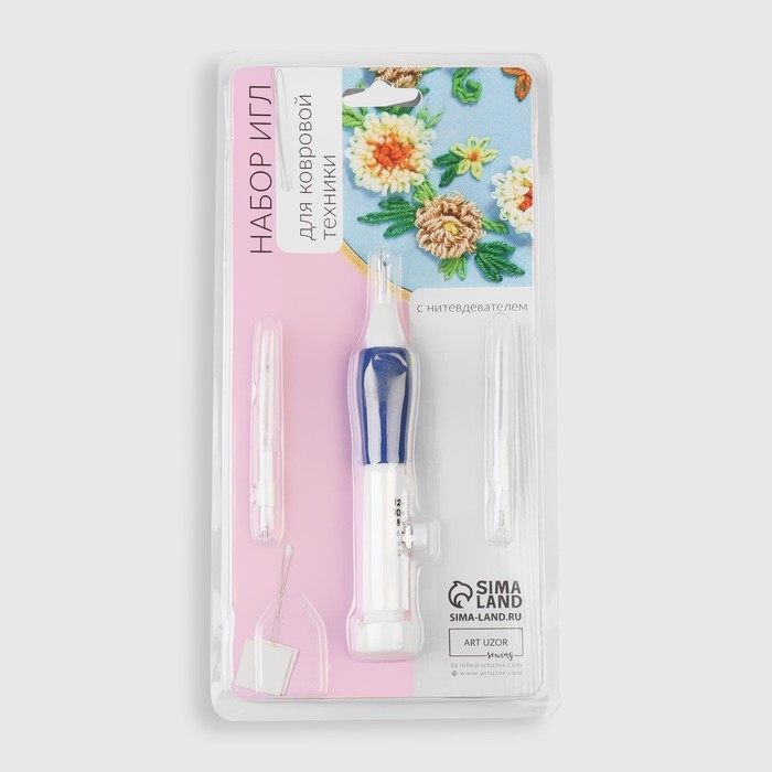 Игла для вышивания, для ковровой техники, d = 1,3/1,6/2,2 мм, с нитевдевателями, цвет белый/синий