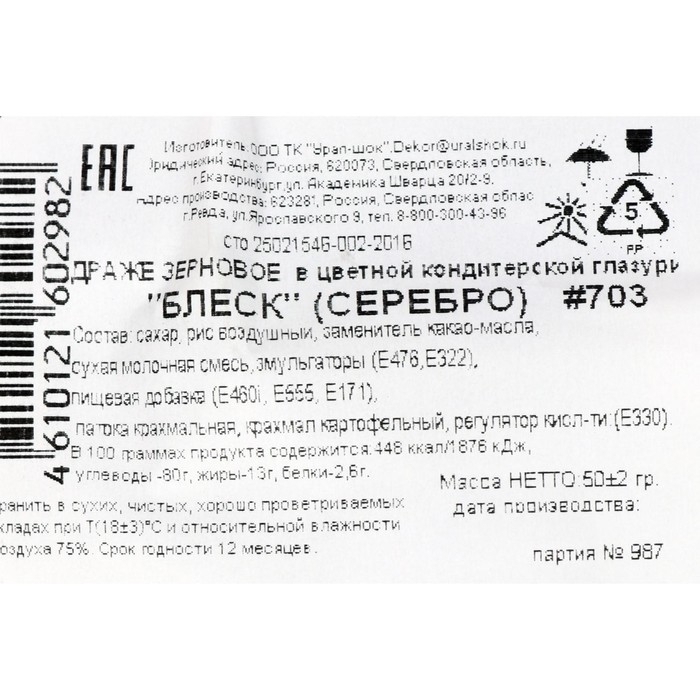 Кондитерская посыпка с мягким центром "Блеск", серебро, 50 г