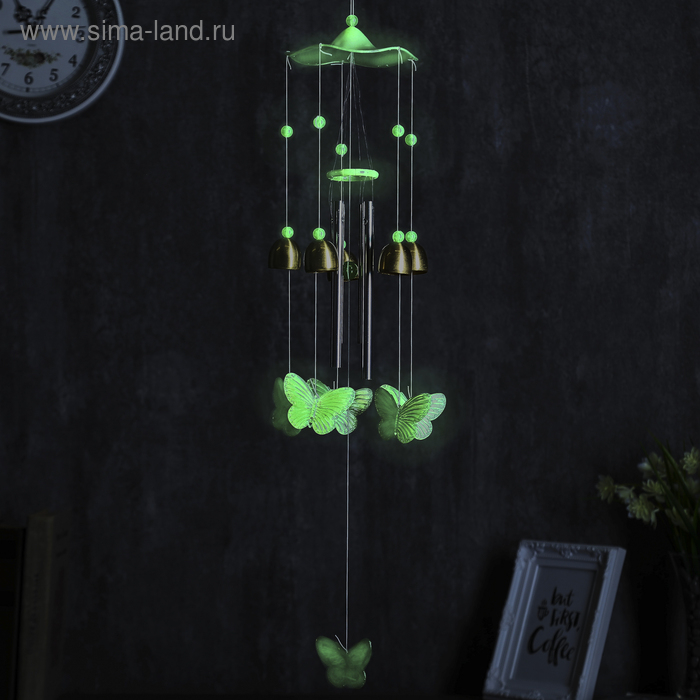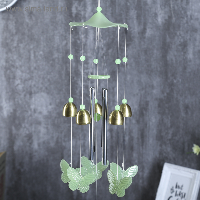 Музыка ветра пластик, металл "Бабочки" фосфорная 4 трубки, 5 колокольчиков 60 см