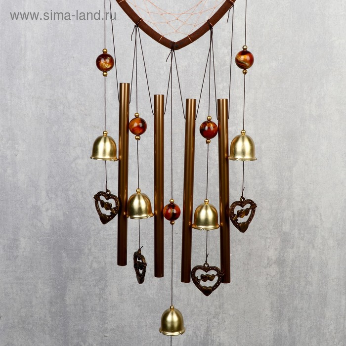 Музыка ветра металл "Сердце с сердечками" 4 трубки 5 колокольчиков d=17 см длина 65 см