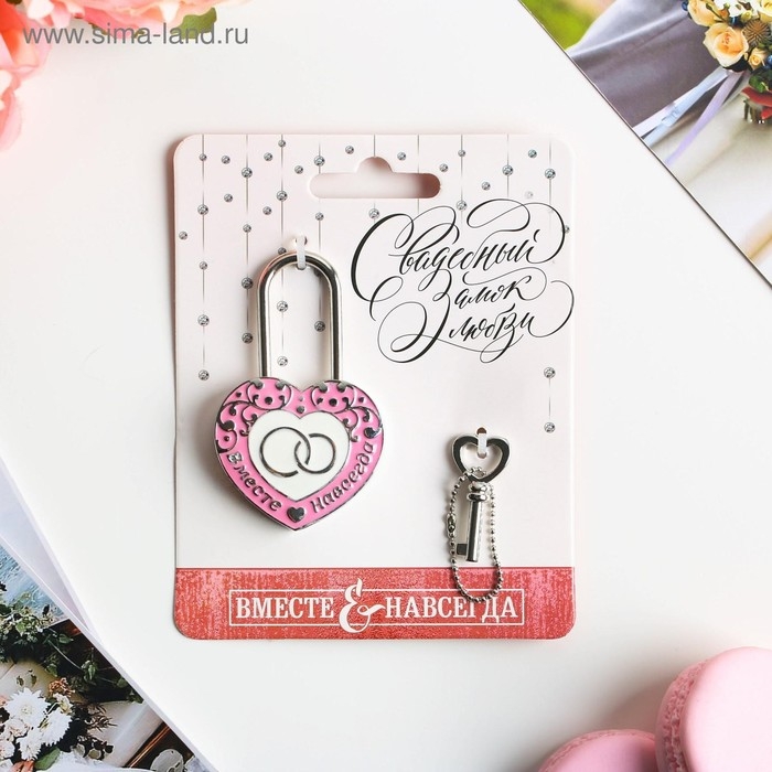 Замок для торжественной свадебной традиции - это символ любви. Навесной замок любви на свадьбе становится символом нерушимого союза, заключенного влюбленными в этот день. По традиции замок вешается на мост, загадывается желание о счастливой семейной жизни, а ключи от него выбрасываются в реку, через левое плечо. Это делается для того, чтобы никто никогда не смог открыть этот замок и нарушить клятву, данную влюбленными. Свадебный замок можно повесить на мост по традиции или на дерево в специалных парках или аллеях молодожен, которые есть во многих городах. Замок навесной свадебный имеет в комплекте ключик, замок закрывается и открывается. Традиция закрывать замок на свадьбу объединяет сердца мужа и жены навсегда. Свадебный декоративный замочек будет отлично смотреться на фотосессии и видео.