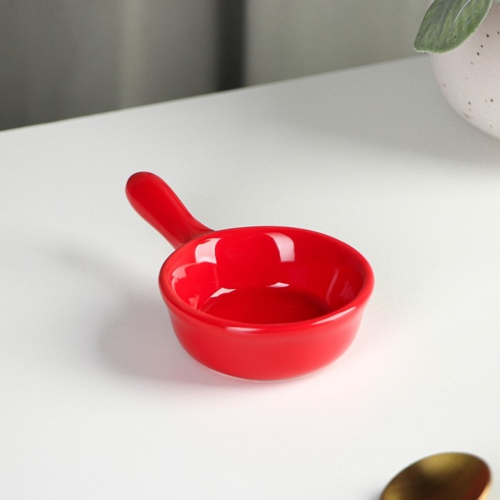 Соусник керамический с ручкой Доляна «Классика», 30 мл, 10×6 см, цвет красный