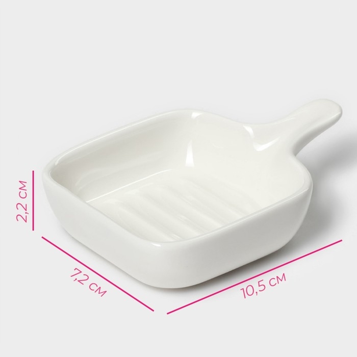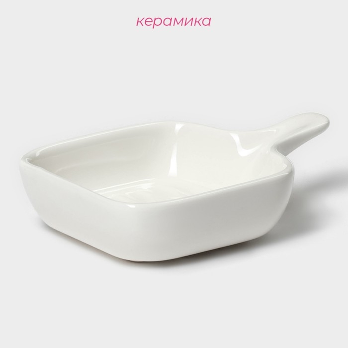 Соусник керамический с ручкой Доляна «Сковорода», 50 мл, 10,5×7,2 см, цвет белый