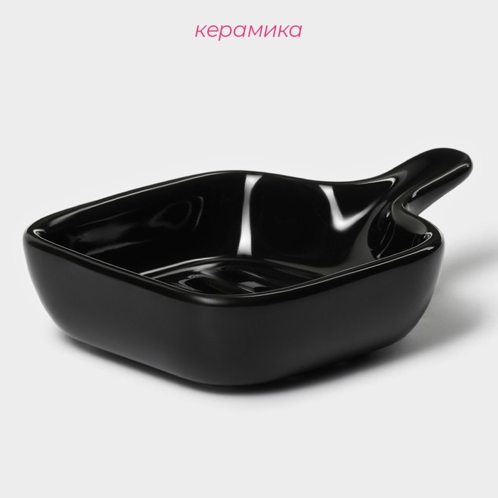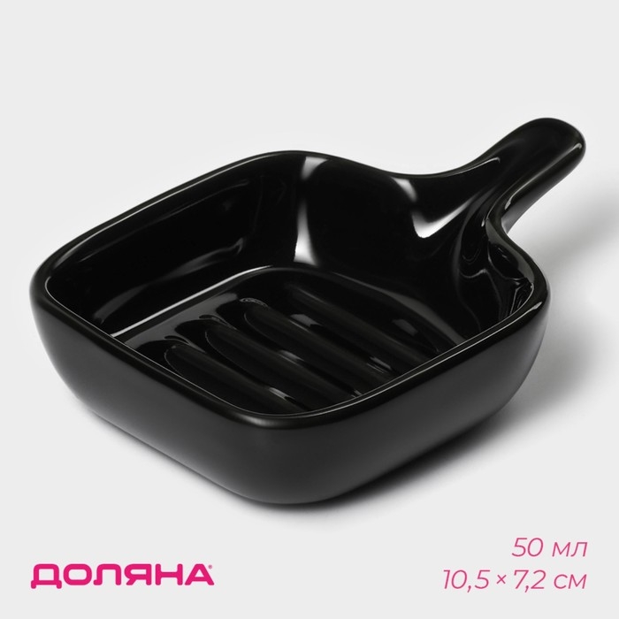 Соусник керамический с ручкой Доляна «Сковорода», 50 мл, 10,5×7,2 см, цвет чёрный