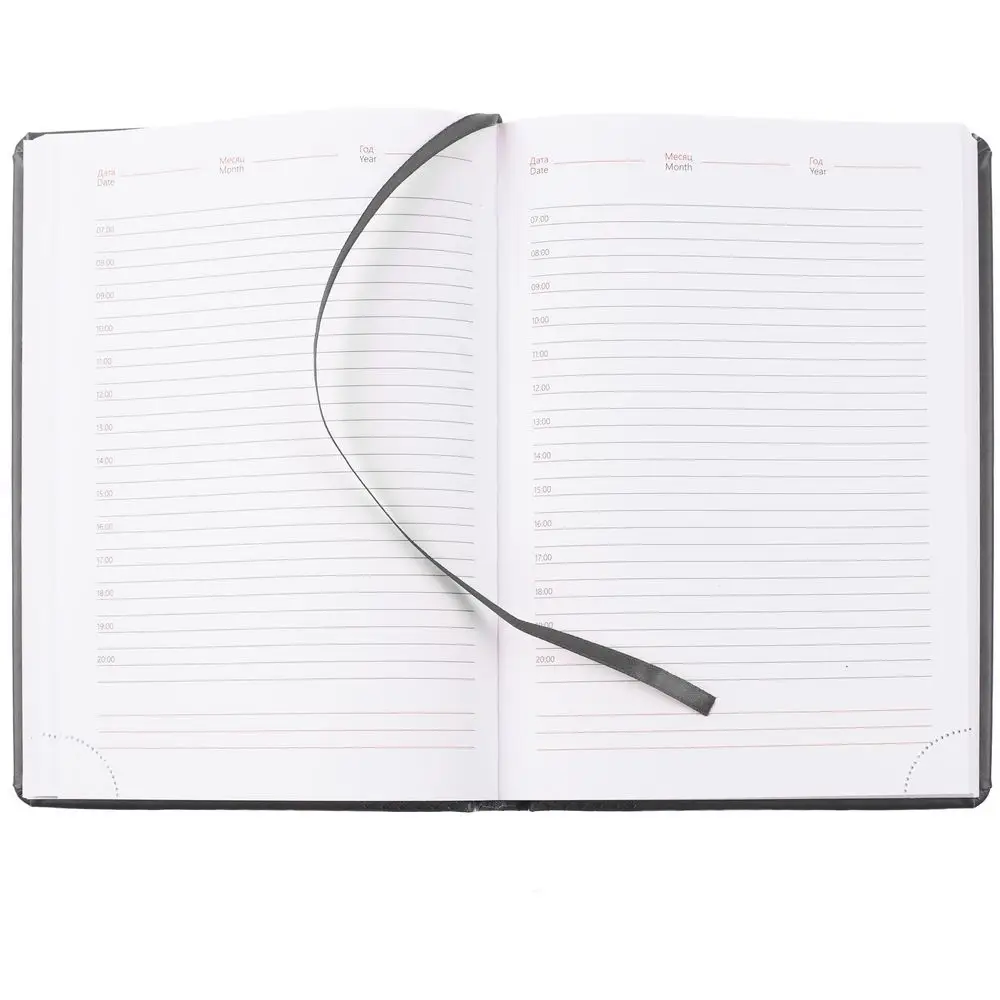 Ежедневник с твердой обложкой, выполнен из материала Waltz, темно-серый EE, дополнен ляссе в цвет материала.
