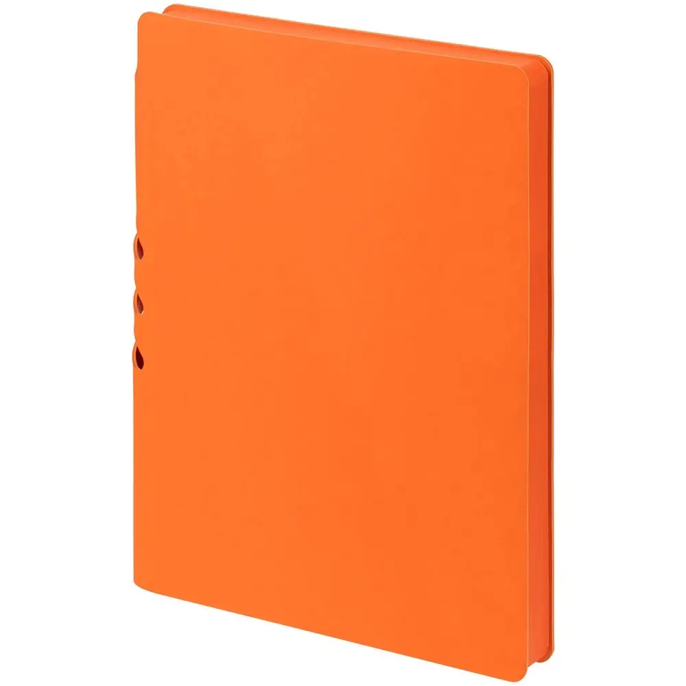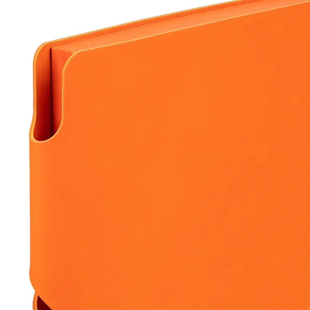 Гибкая обложка выполнена из материала Soft Touch, оранжевый OO и Latte, оранжевый OO (внутренняя часть обложки). Внутри корешка — специальное место для крепления ручки размером до 15х1 см.