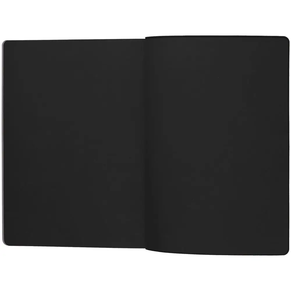 Гибкая обложка выполнена из материала Soft Touch, черный АА и Latte, черный АА (внутренняя часть обложки). Внутри корешка — специальное место для крепления ручки размером до 15х1 см.