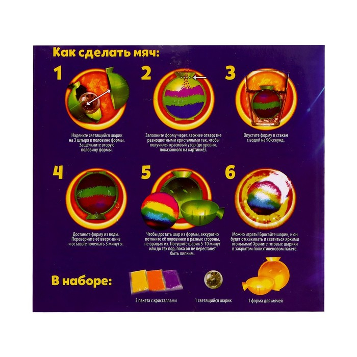 С набором для опытов «Прыгающие мячи» ребёнок проведёт химический эксперимент и узнает, как создать светящийся мяч-попрыгунчик своими руками.