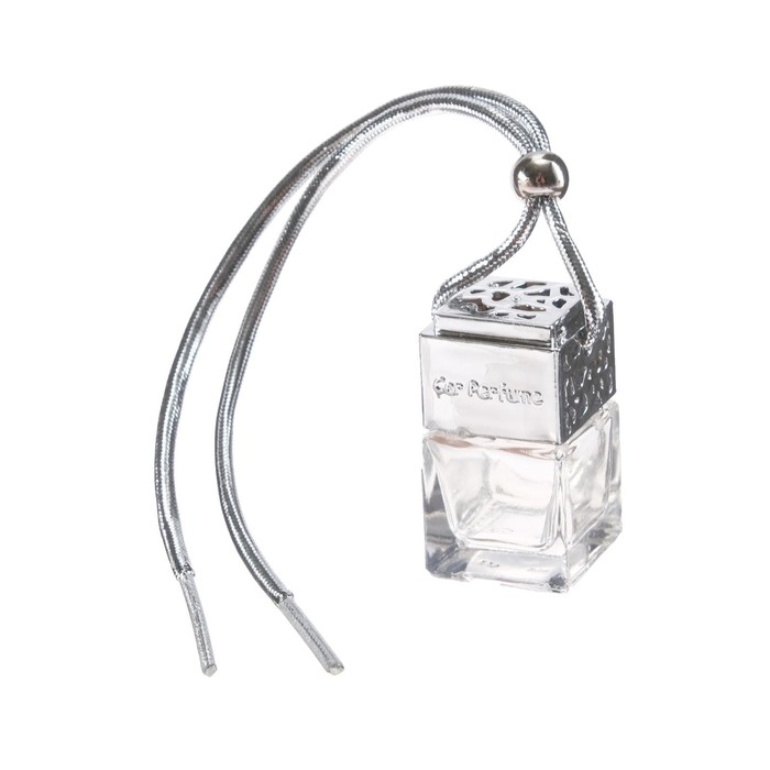 Флакон под автомобильный ароматизатор “Car Parfume”, объем 8 мл. Оснащен подвесным креплением, цвет - хром. Устанавливается на зеркало заднего вида для удобства использования и создания приятного аромата в автомобиле.