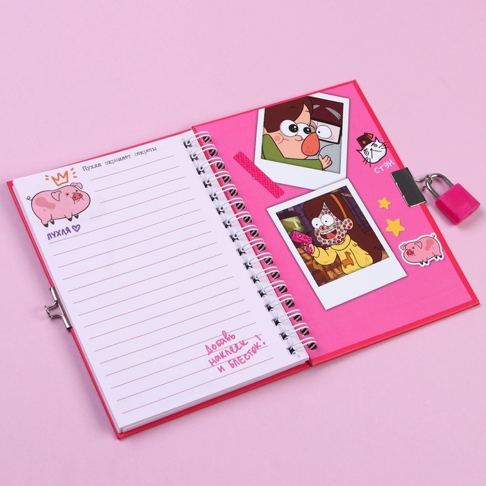 Записная книжка на замочке А6, "Дневник Мэйбл", 50 листов, Гравити Фолз