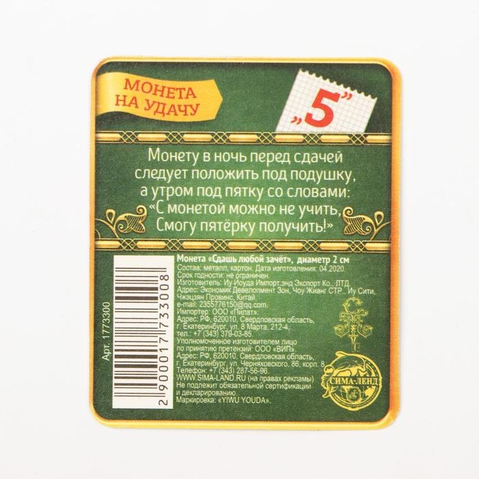 Монета сувенир «Студенческий пятак», d=2 см.