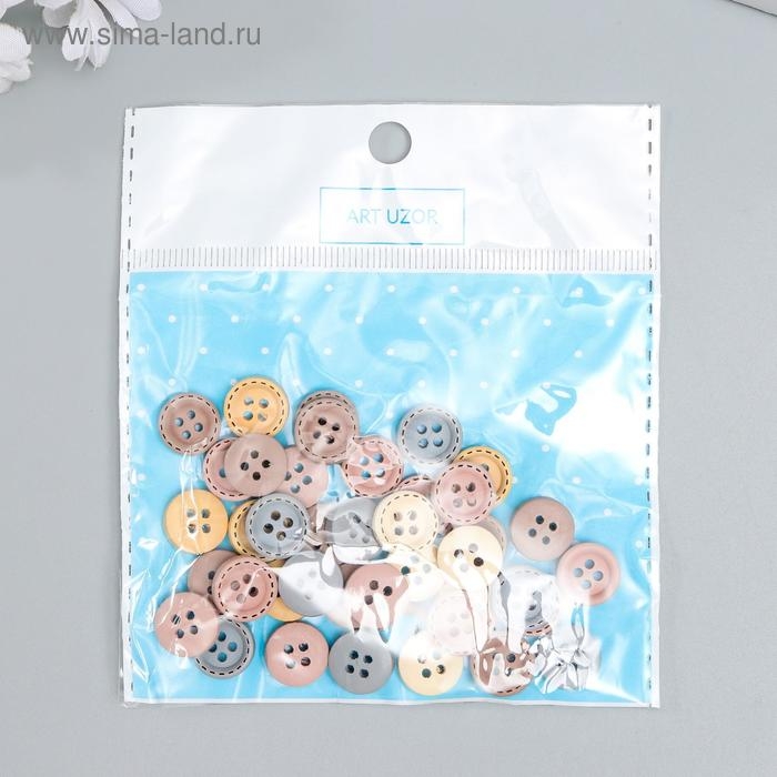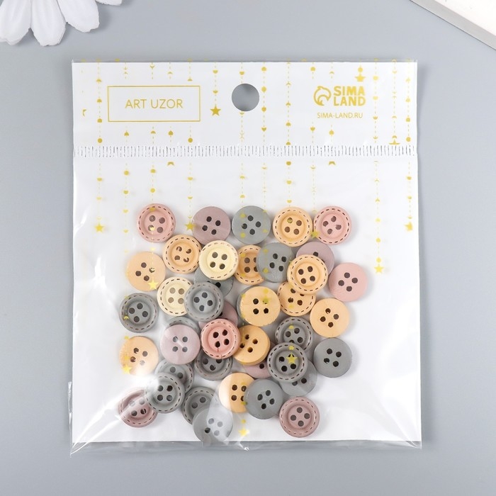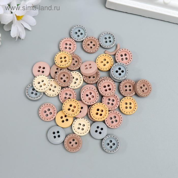 Пуговицы дерево для творчества 4 прокола "Стиль" набор 40 шт МИКС 1,2х1,2 см