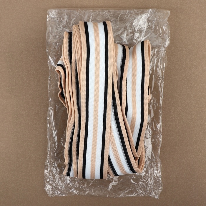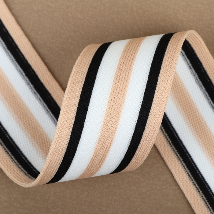 Тесьма трикотажная лампас 40 мм, 9,1 ± 0,5 м, цвет бежевый/чёрный/белый