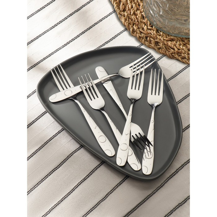 Набор вилок столовых из нержавеющей стали Доляна «Бабл», h=20 см, 6 шт, цвет серебряный