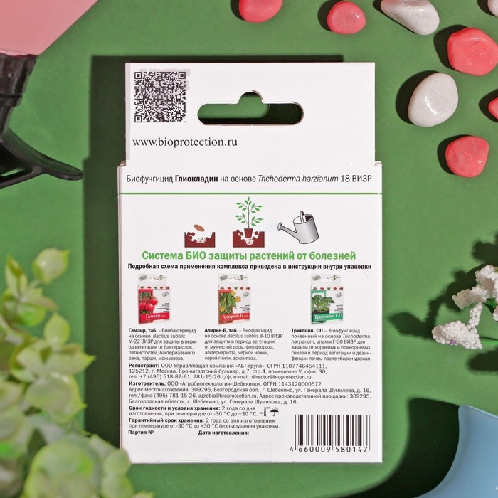 Биологический почвенный фунгицид на основе полезного почвенного гриба Trichoderma harzianum, штамм ВИЗР-18, предотвращающий развитие корневой и прикорневой гнили.