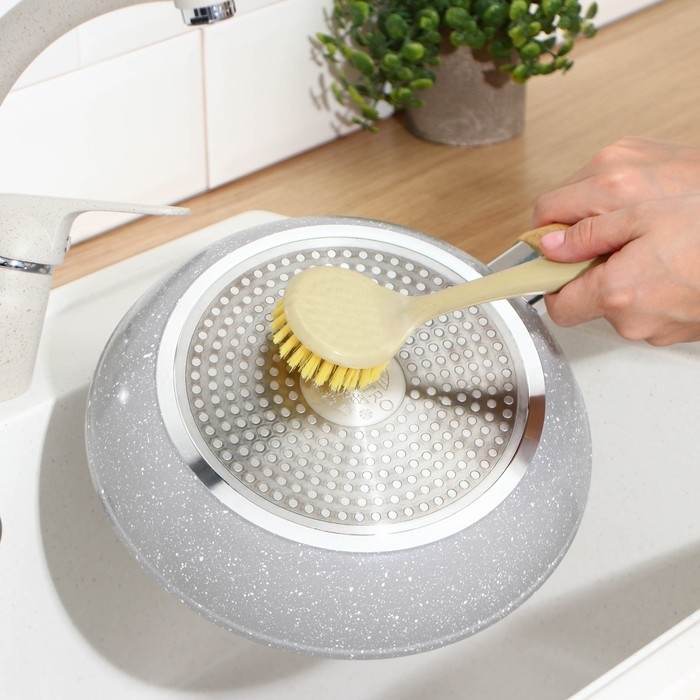 Щётка для посуды Доляна Meli, бамбуковая ручка, двухсторонняя, ворс TPR 1,8 см, 5×26,5 см