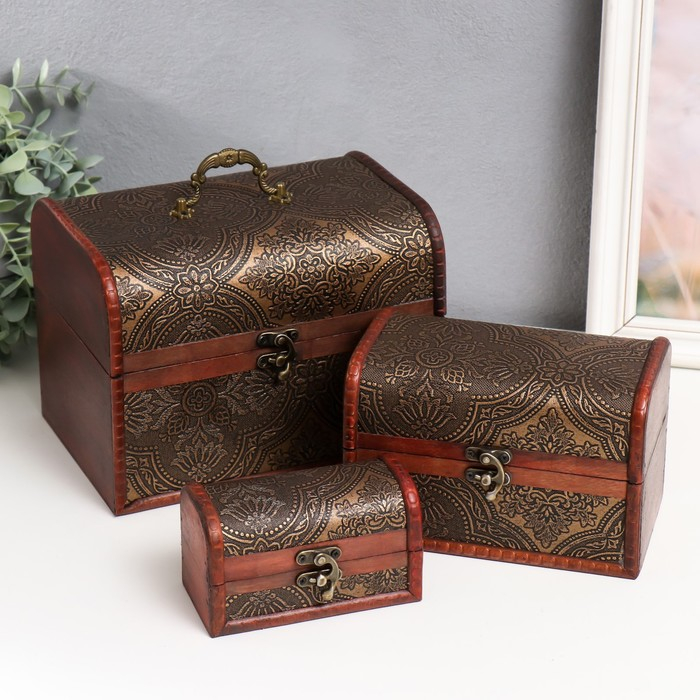 Шкатулка дерево сундук "Золотой орнамент" н-р 3 шт 7,5х12х6,5 11,5х17х10,5 16,5х22,5х15,5 см