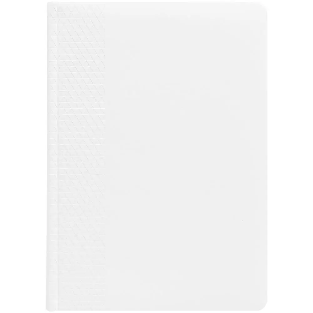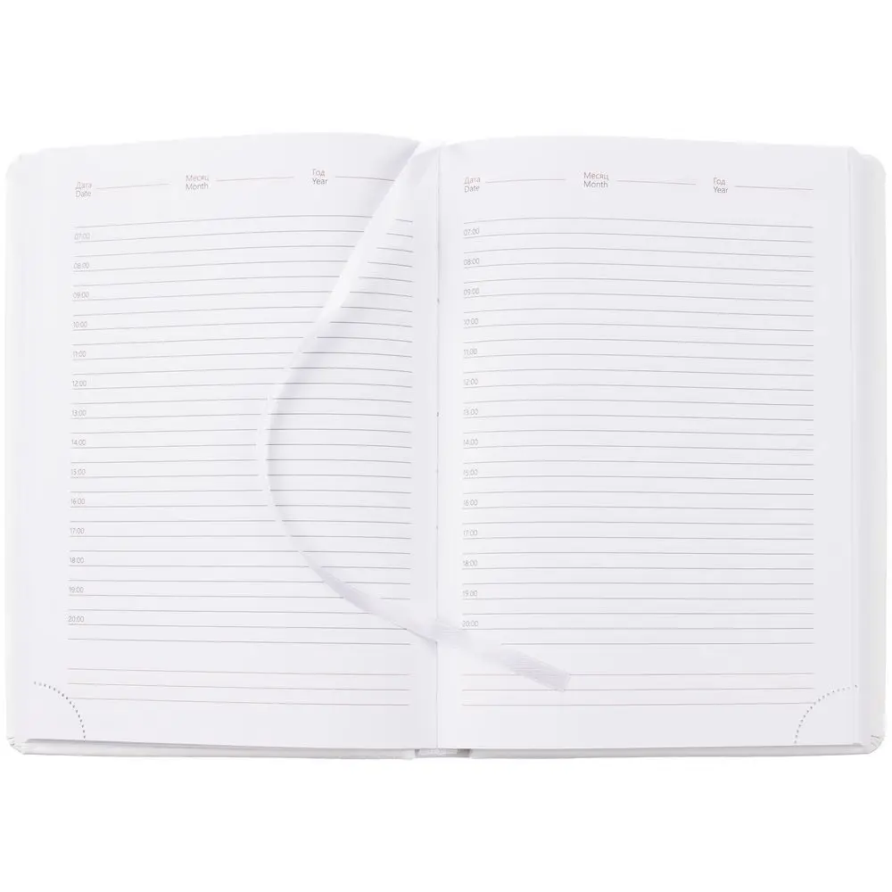 Ежедневник с твердой обложкой, выполнен из материала Waltz, белый ВВ, дополнен ляссе в цвет материала.
