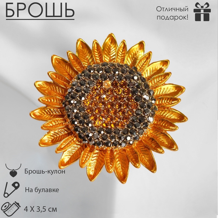 Брошь-кулон «Подсолнух», цвет серо-золотой в золоте