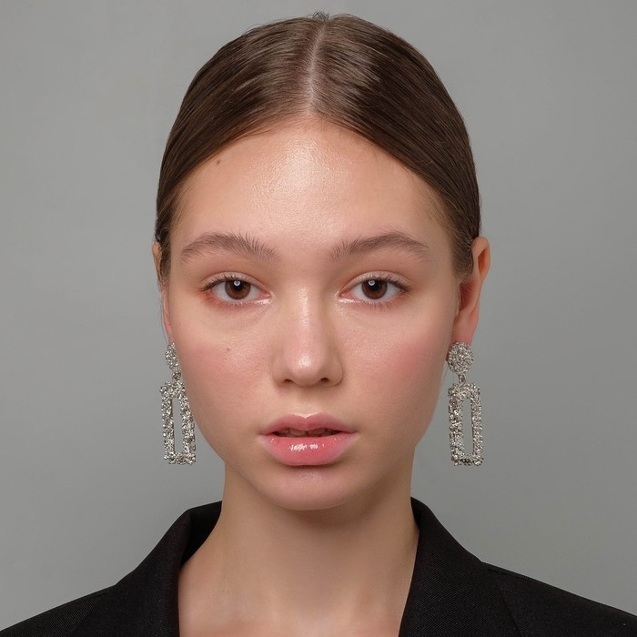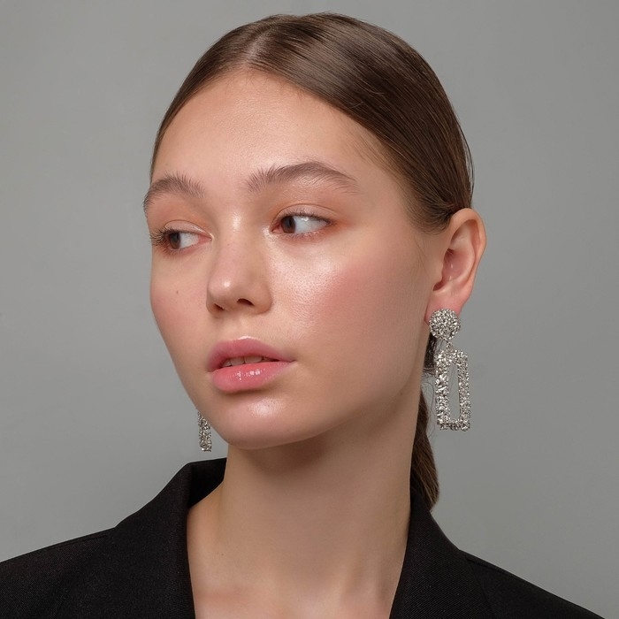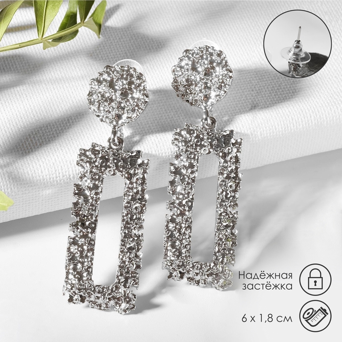 Серьги металл «Карибы» прямоугольные, цвет серебро
