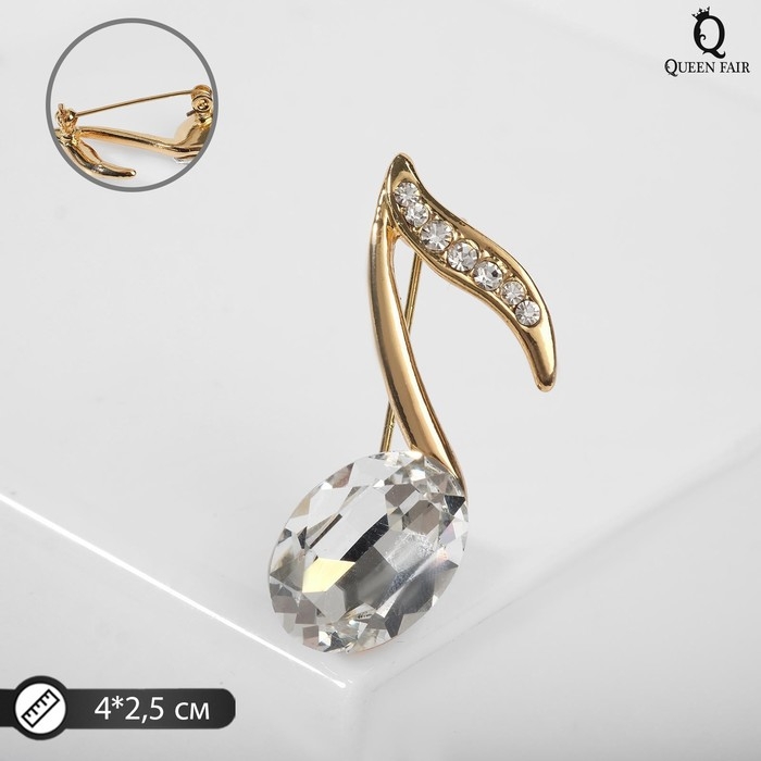 Брошь «Нота» из симфонии, цвет белый в золоте
