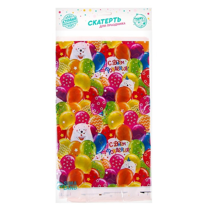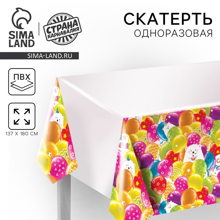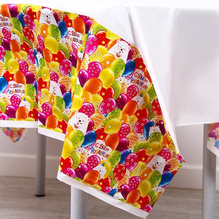 Скатерть одноразовая «С днём рождения», мишка, 180х130 см