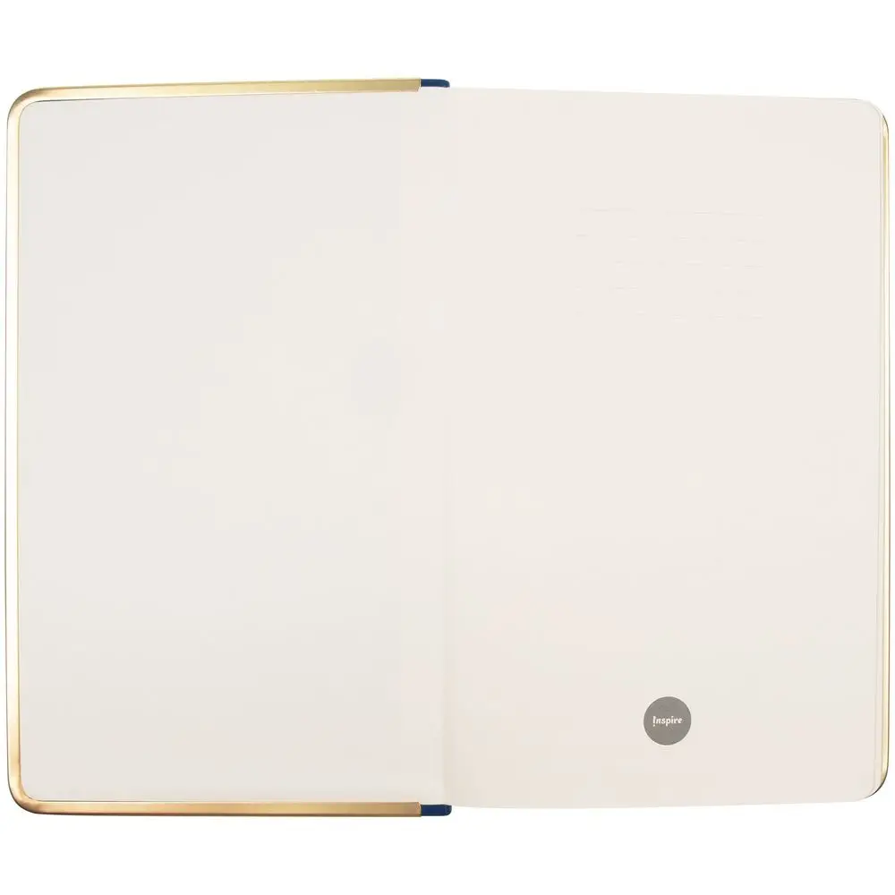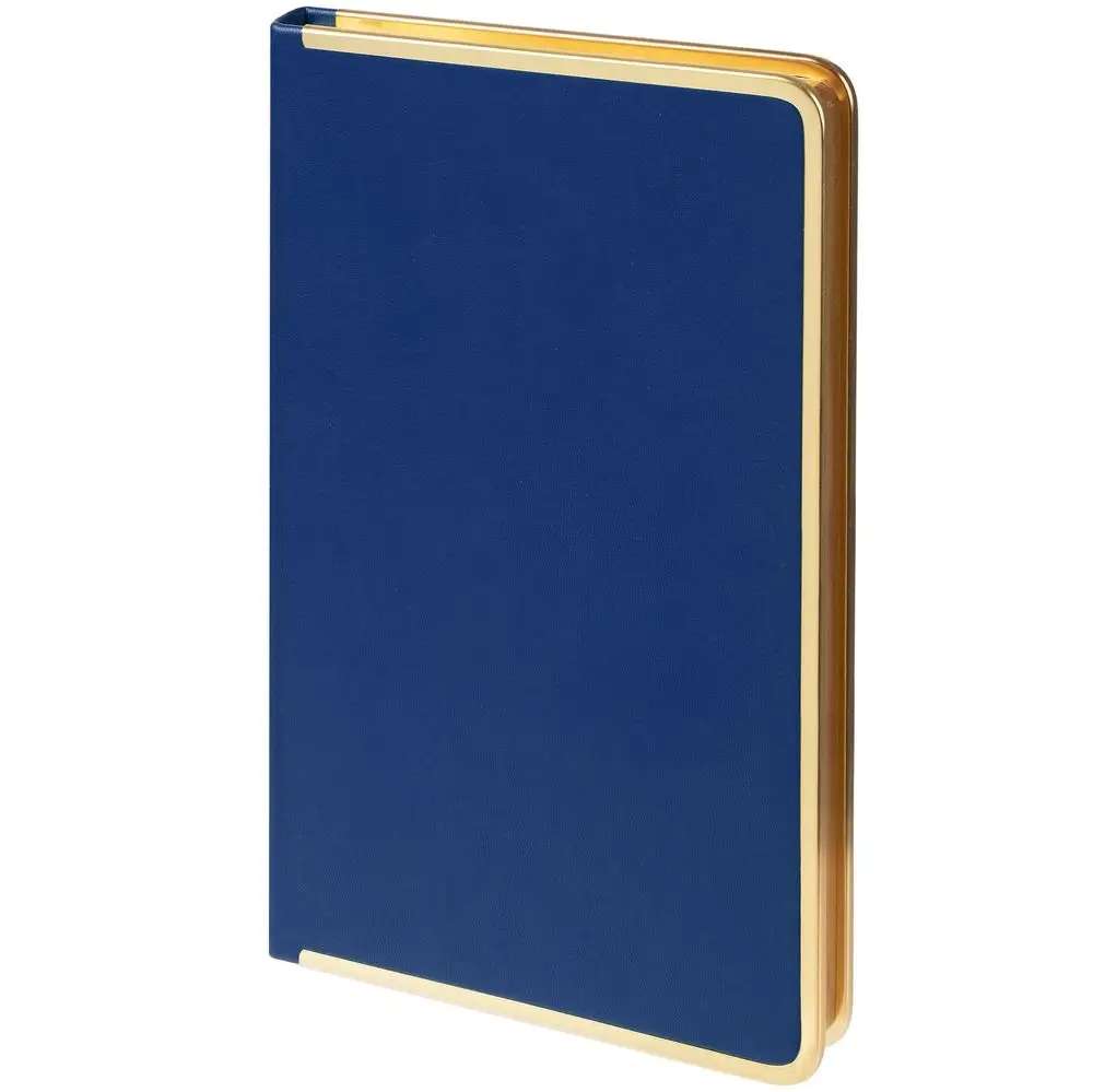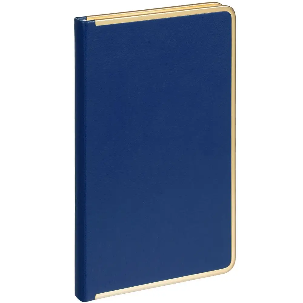 Изящный ежедневник с зауженным блоком и стильными деталями — металлической окантовкой на обложке и металлизированным обрезом.