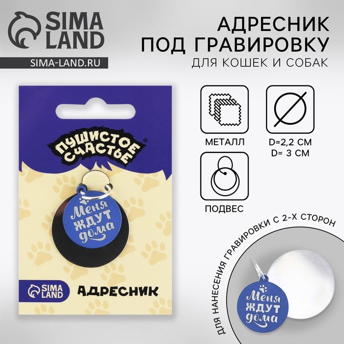 Аксессуар позволит вернуть вашего маленького друга домой, если он потеряется. Просто отдайте адресник под гравировку для переноса данных (кличка питомца, номер телефона или адрес) — вся важная информация будет на нём.