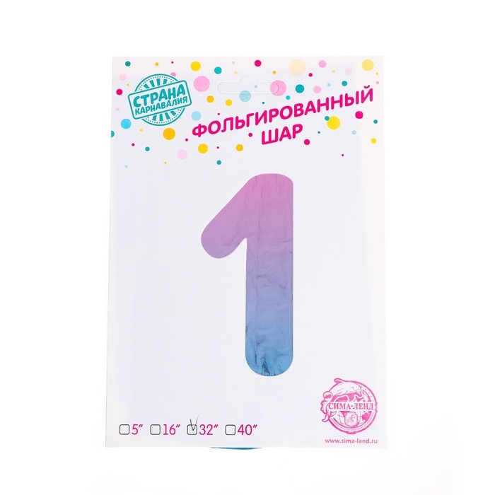 Шар фольгированный 32" «Цифра 1», градиент фиолетовый