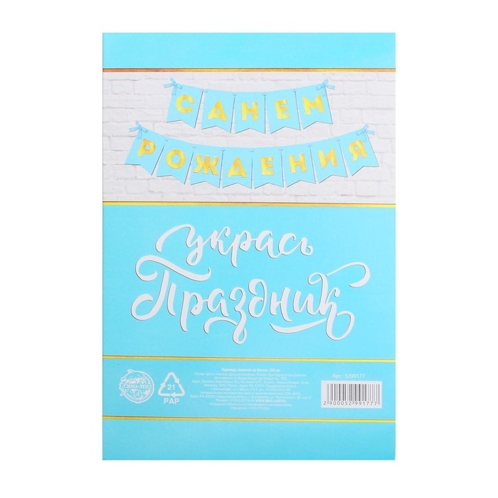 Гирлянда тиснение на бумаге «С Днем Рождения», голубая, золотые буквы, дл. 156 см., 250 гр/кв.м