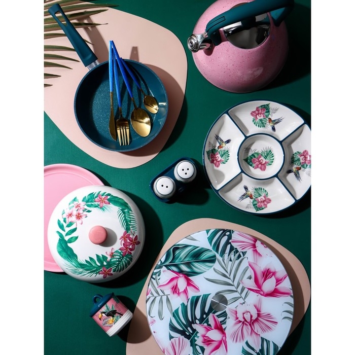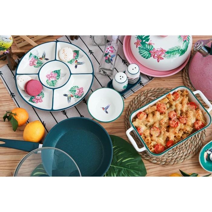 Посуда серии «Тропики» от торговой марки Доляна изготовлена из качественного доломита. Оригинальный и яркий дизайн изделий добавит изюминку на вашу кухню. Посуда в таком исполнении станет настоящим украшением для интерьера и декором для праздничной сервировки стола!