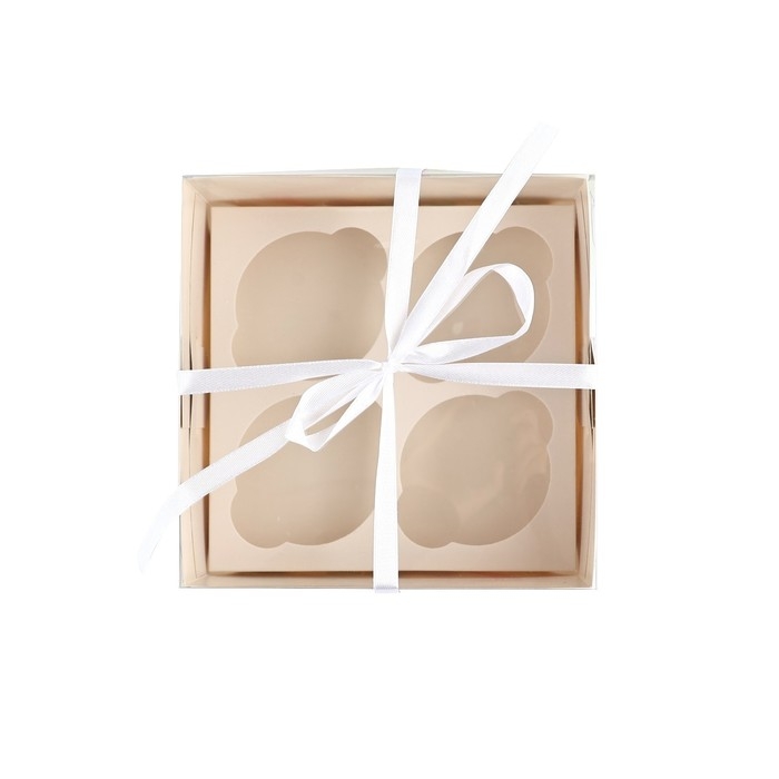 Коробка для 4 капкейков, белая 16 х 16 х 14 см