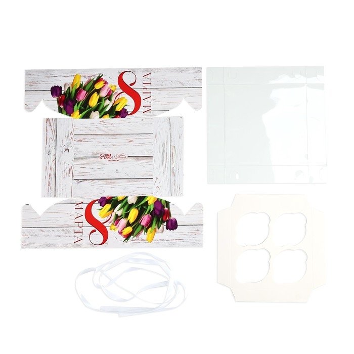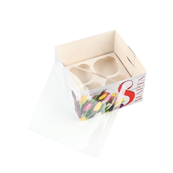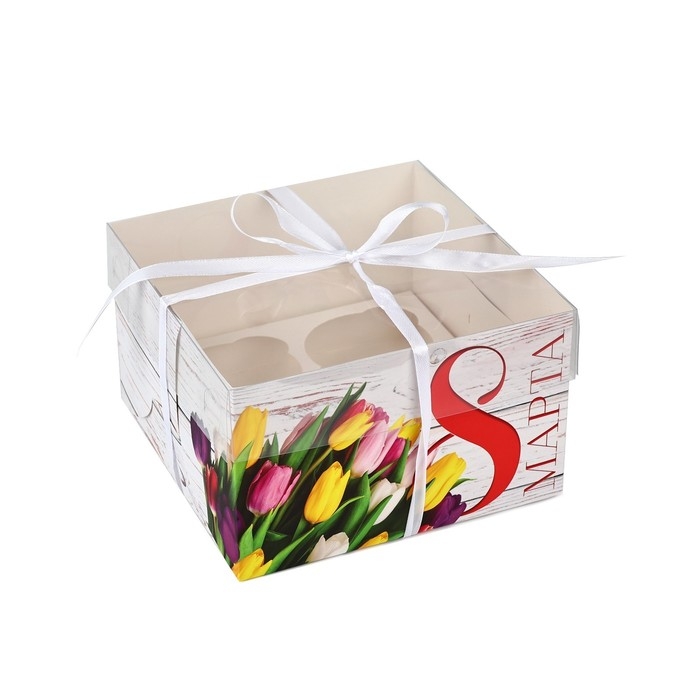 Коробка для капкейков, кондитерская упаковка, 4 ячейки «8 Марта», 16 х 16 х 10 см