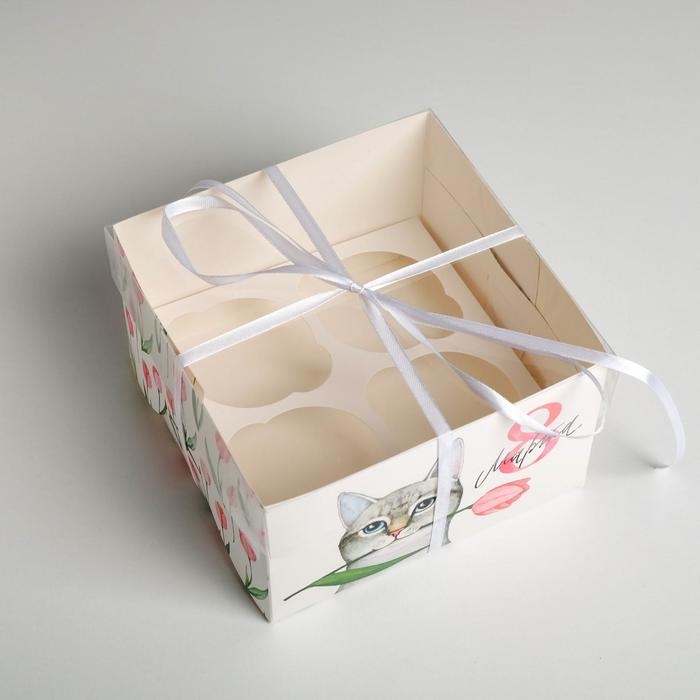 Коробка для капкейков, кондитерская упаковка, 4 ячейки «8 Марта!», 16 х 16 х 10 см
