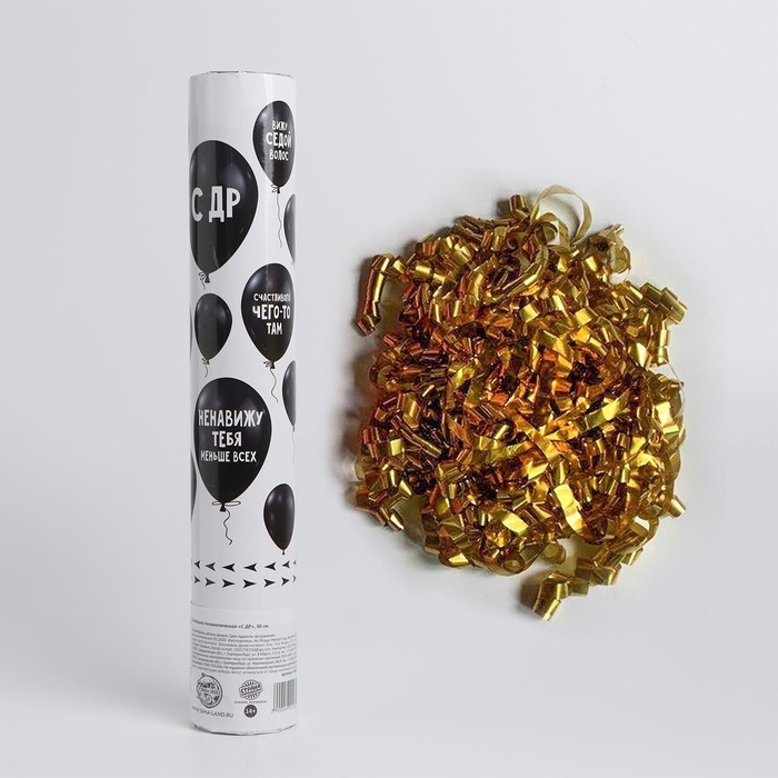 Хлопушка пневматическая «С днём рождения», цвет золотой, 20 см
