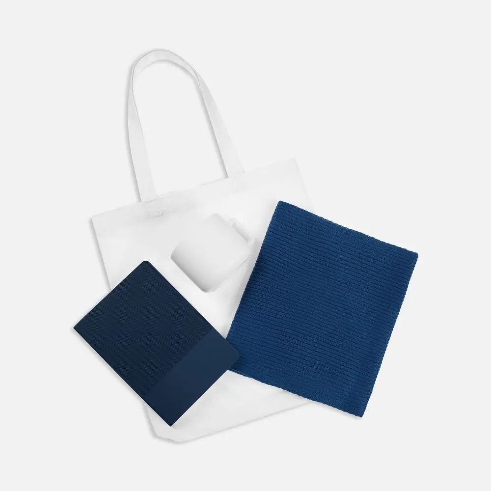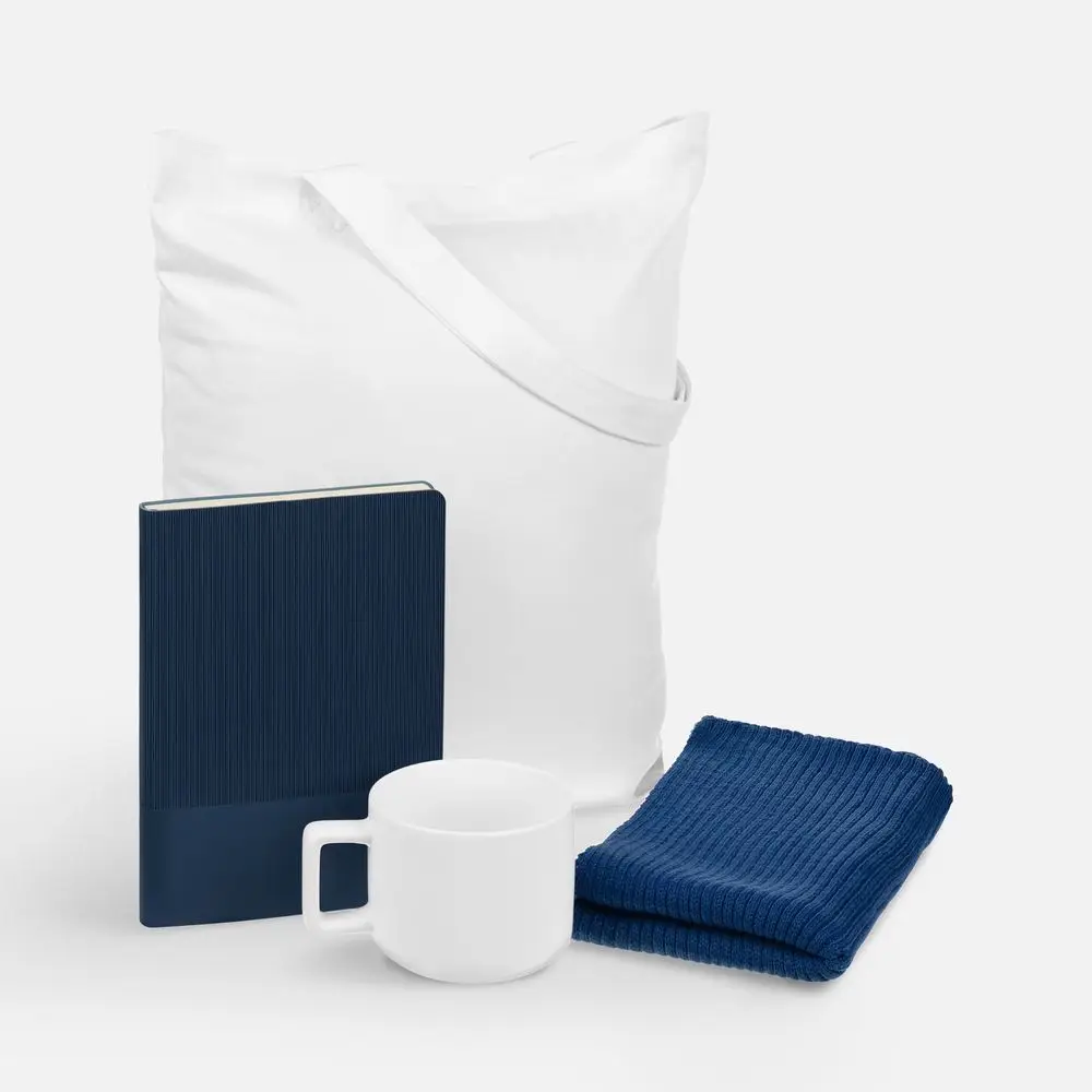 Кружка выверенной формы, сделает каждое чаепитие незабываемым. Уютный шарф с мягкой текстурой станет незаменимым аксессуаром в прохладную погоду, а ежедневник с фактурным тиснением на обложке сделает ведение записей особенным. Шопер в качестве упаковки набора делает его более современным и практичным.