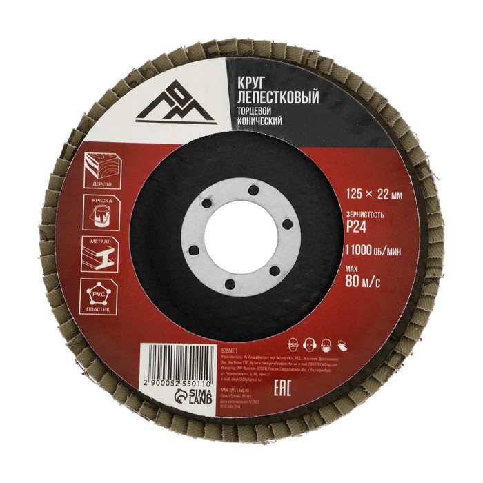 Круг лепестковый торцевой конический ЛОМ, 125 х 22 мм, Р24