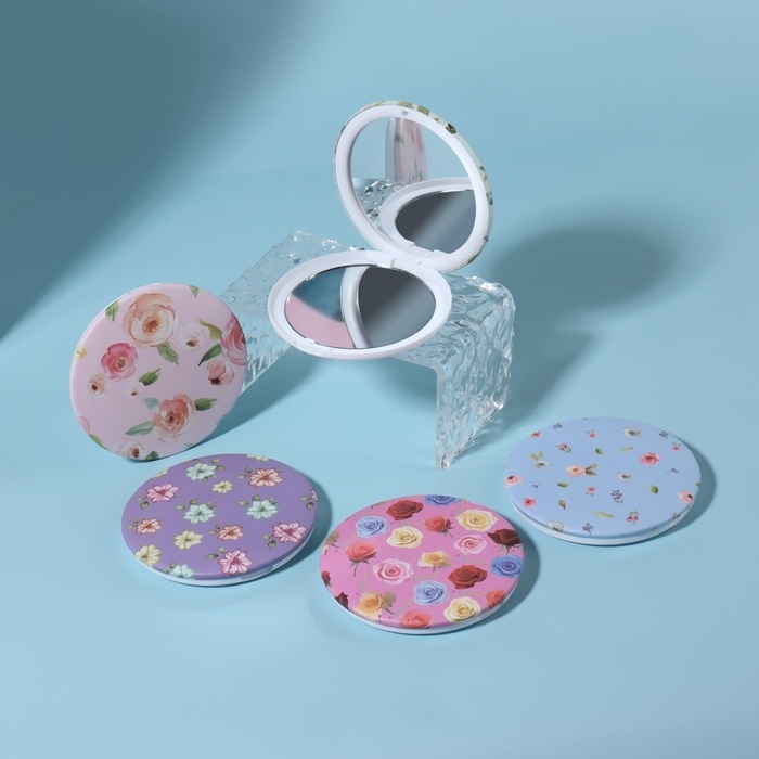 Зеркало складное «Цветы», d = 7,5 см, с увеличением, рисунок МИКС