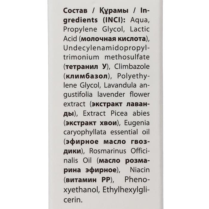 Состав: Тетранил–У, климбазол, карбамид, молочная кислота, экстракт лаванды, экстракт хвои, эфирное масло гвоздики, эфирное масло розмарина.