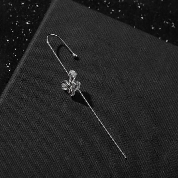 Серьга «Кафф» булавка, бабочка, цвет белый в серебре