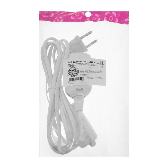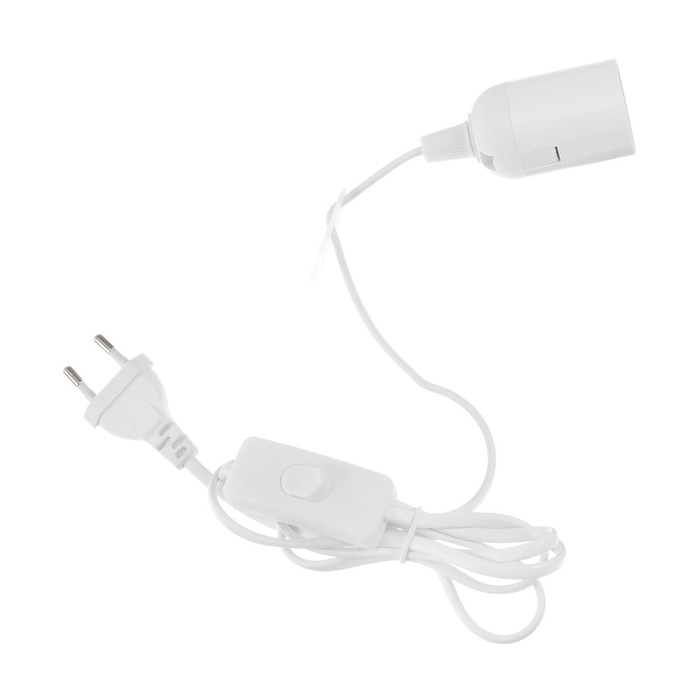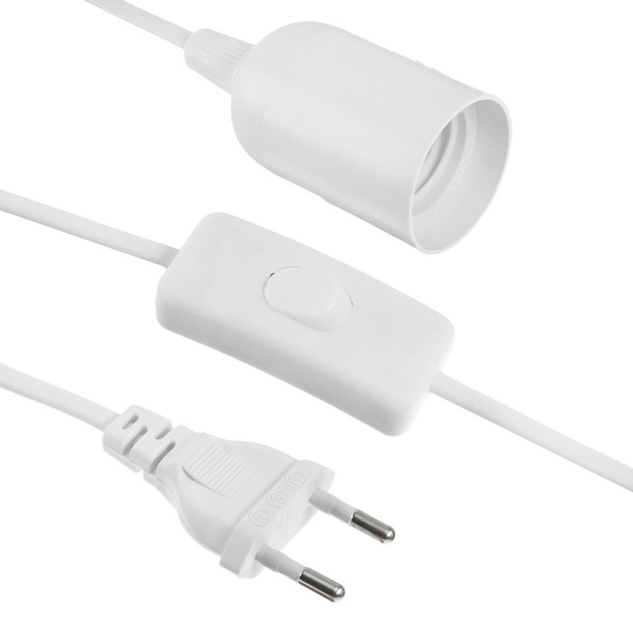 Патрон подвесной с выключателем, Е27, провод 2 м, белый