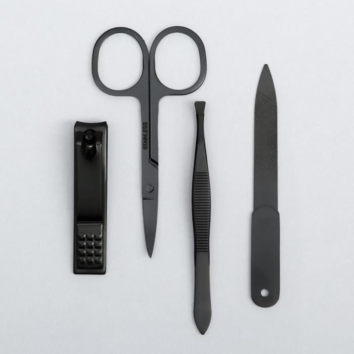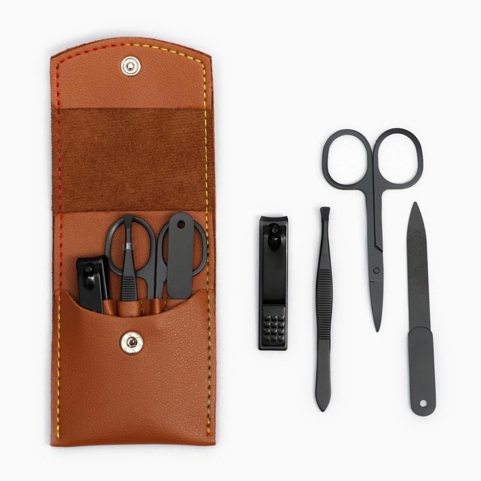 Набор маникюрный, 5 предметов, в футляре, цвет чёрный