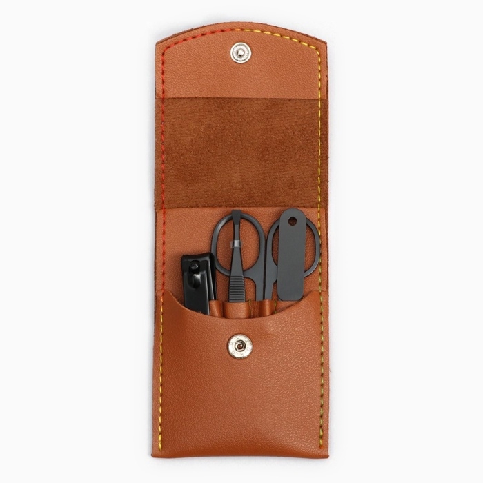 Набор маникюрный, 8 предметов, в футляре, цвет коричневый