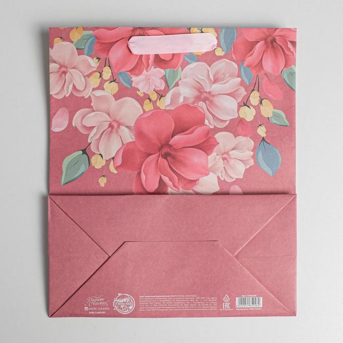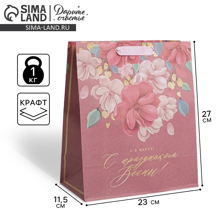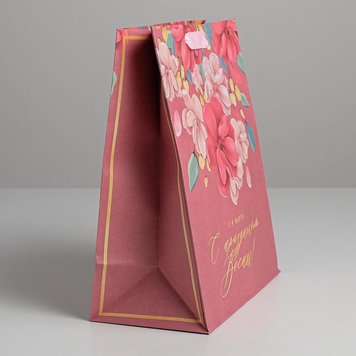 Пакет подарочный крафтовый вертикальный, упаковка, «С Праздником Весны!», ML 23 х 27 х 11,5 см